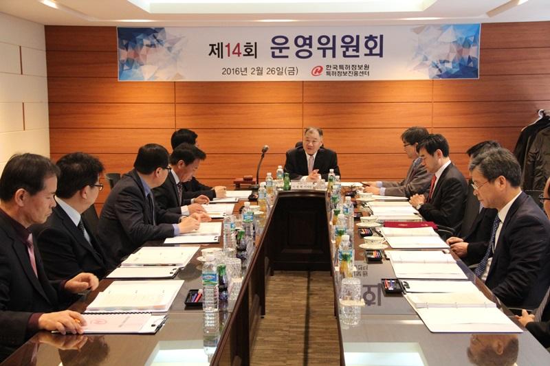 특허정보진흥센터는 2. 26(금) 오전 11시 서울 동교동 사옥 9층 대회의실에서 이범희 이사장과 운영위원들이 참석한 가운데, 제14회 운영위원회를 열고 2015년 사업실적 및 결산(안)과 2016년 사업계획 및 예산(안)을 비롯한 3개 의안을 심의했다.