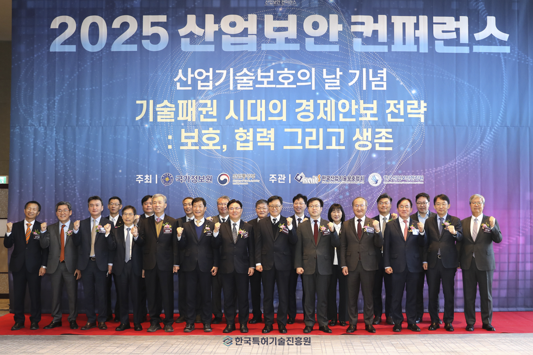 한국특허기술진흥원(원장 김명섭·앞줄 왼쪽에서 여섯 번째)은 지난 18일 서울 강남구 그랜드 인터컨티넨탈 서울 파르나스에서 열린 ‘2025 산업보안 컨퍼런스’에 참석했다.