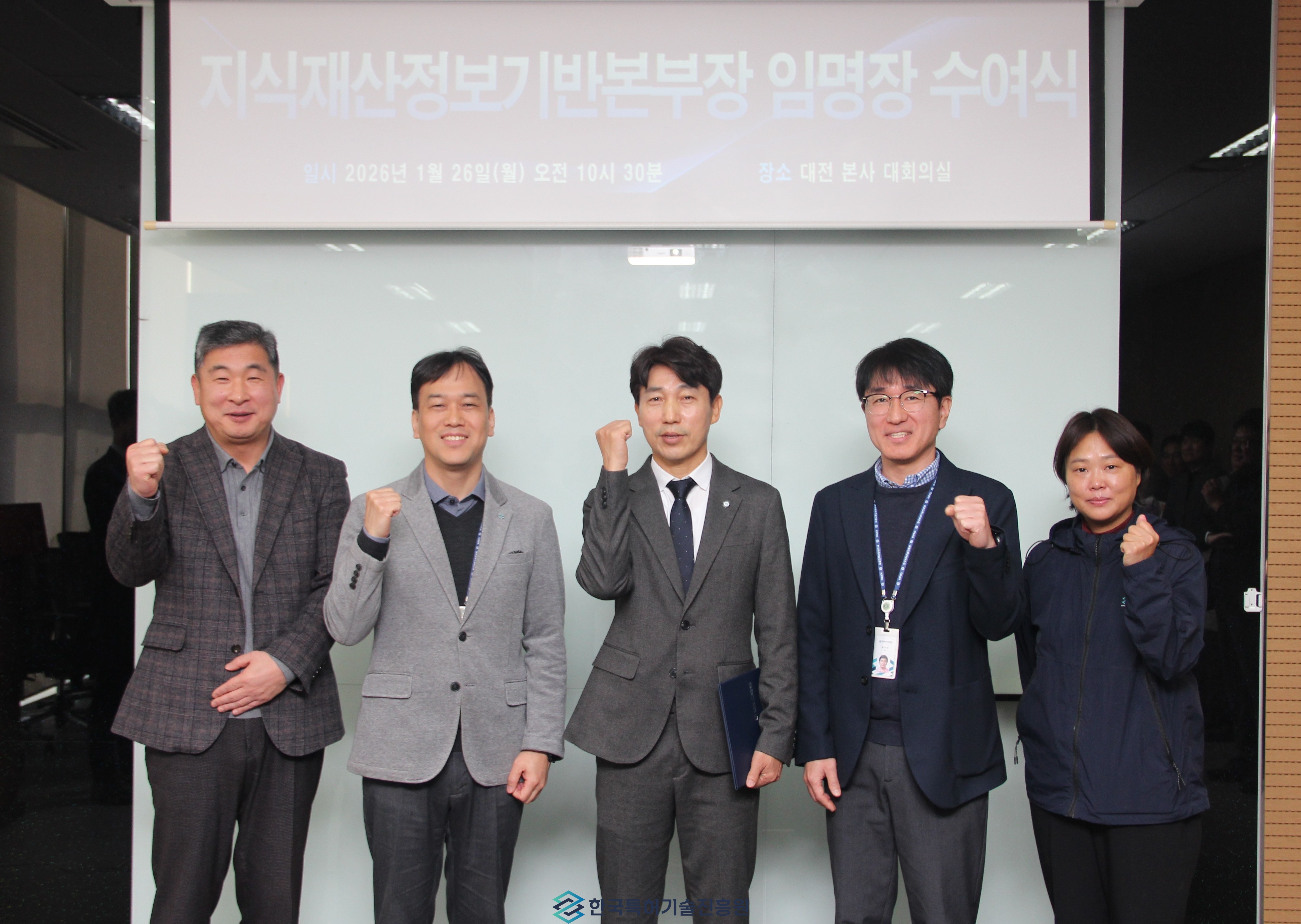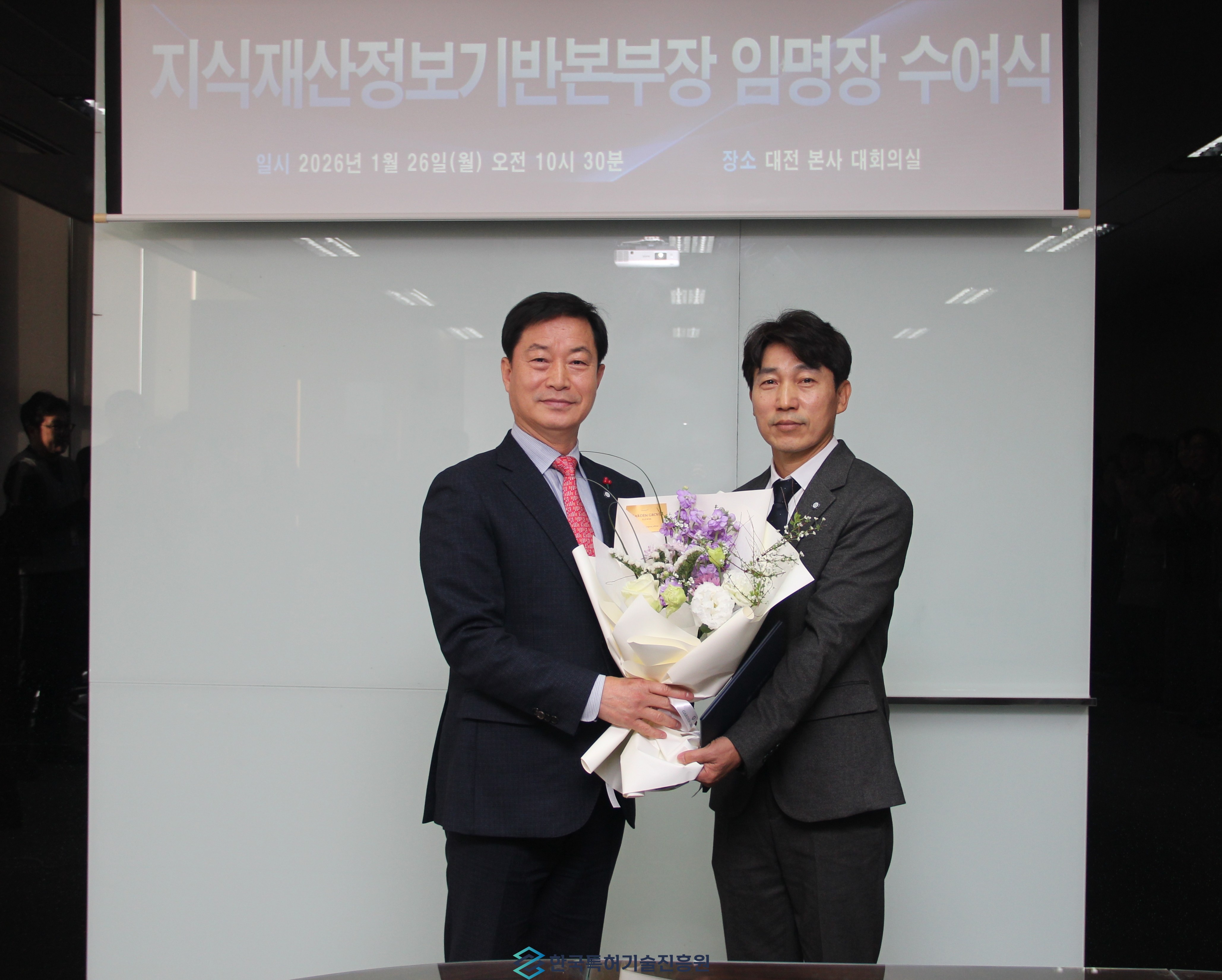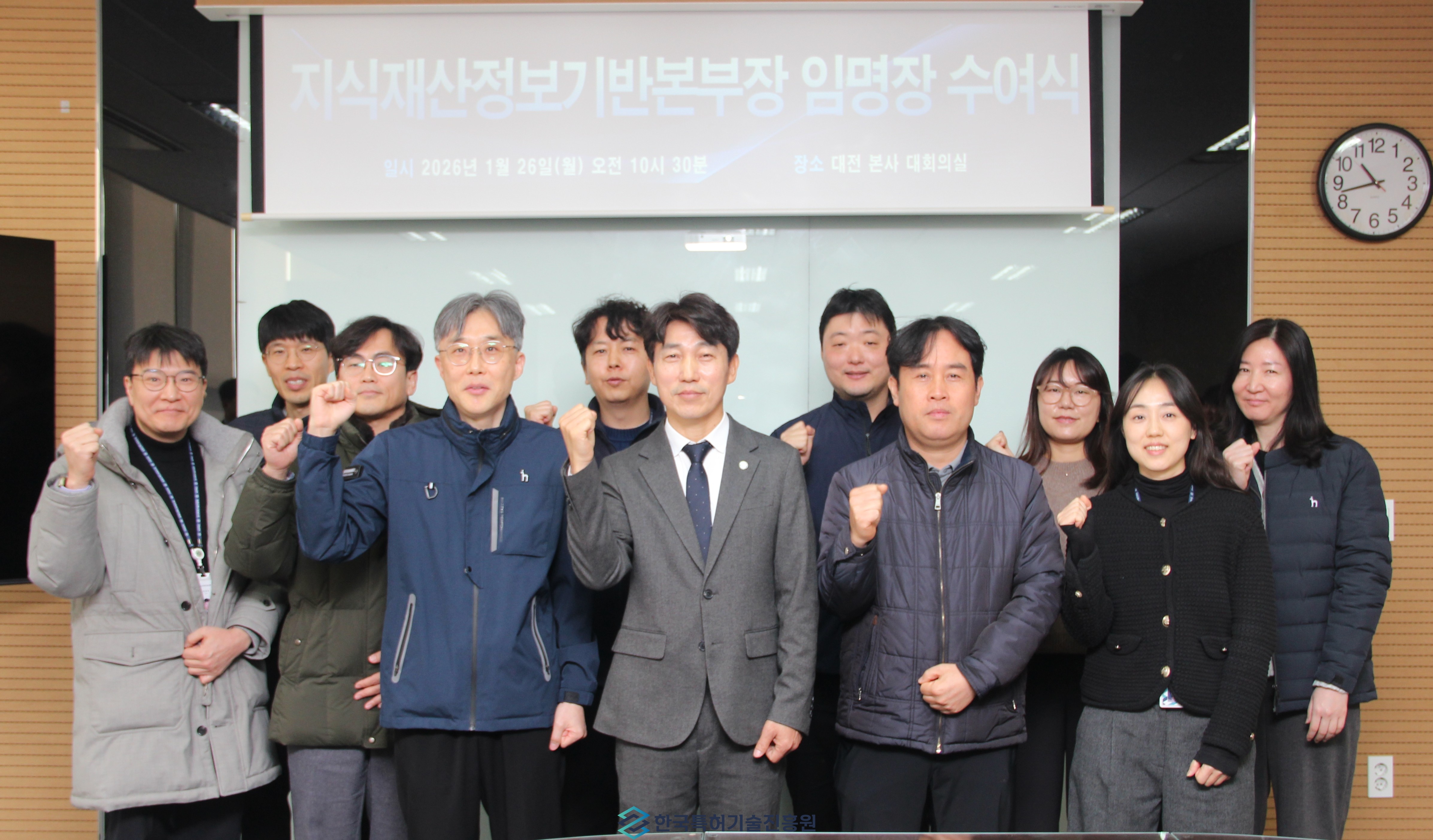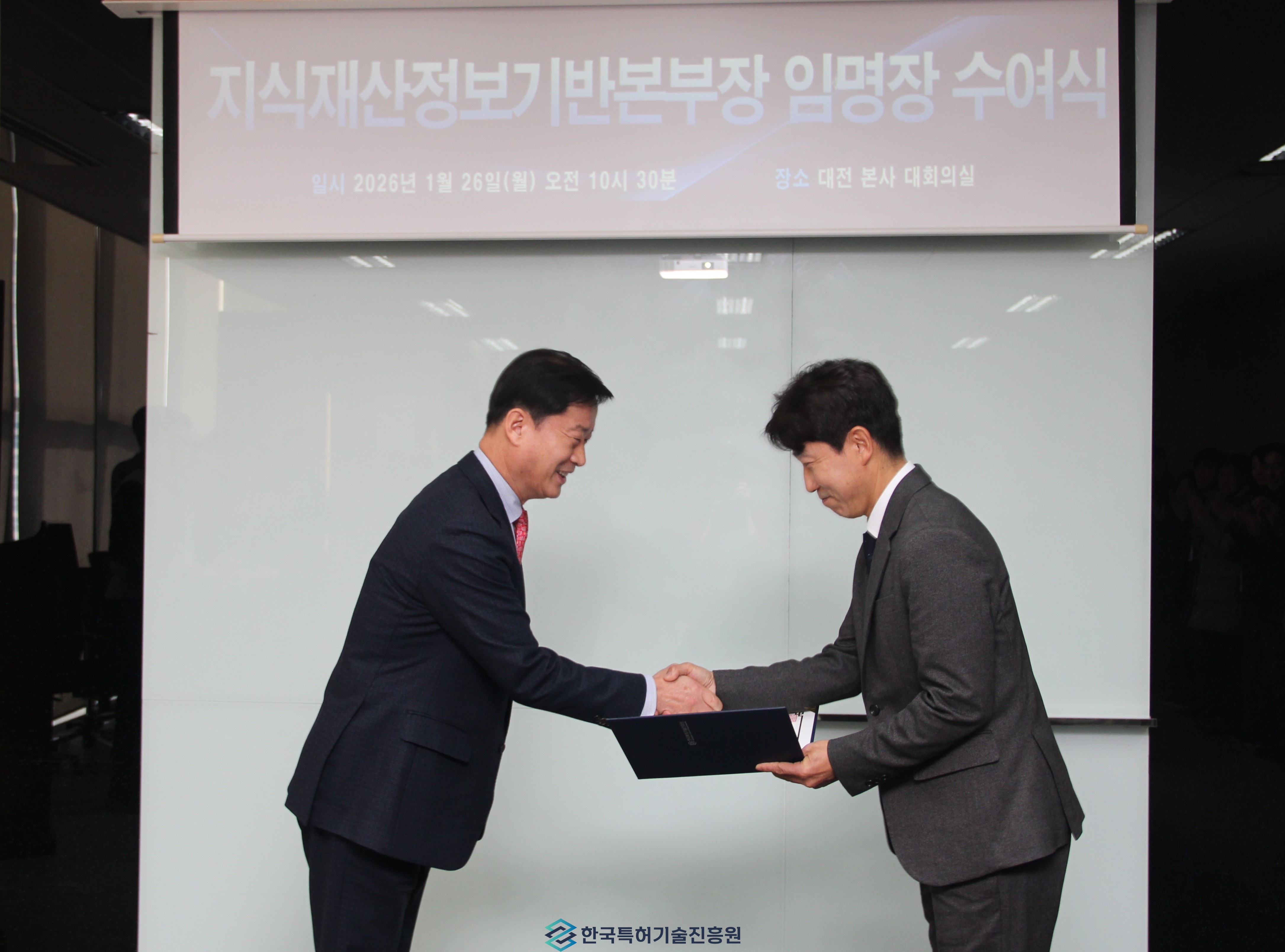 한국특허기술진흥원(원장 김명섭)은 지난 1월 26일 대전 본사 대회의실에서 이형백 신임 지식재산정보기반본부장에 대한 임명장 수여식을 개최했다고 밝혔다.