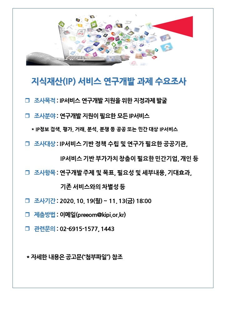 [한국특허정보원] 지식재산(IP) 서비스 연구개발 과제 수요조사 안내