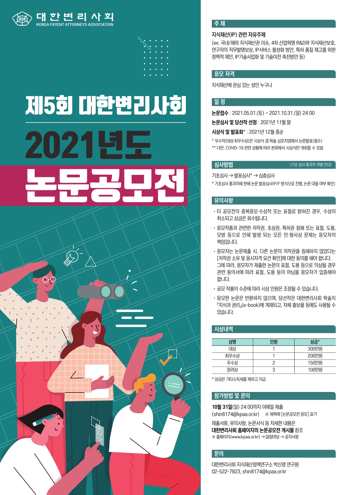 [대한변리사회] 2021년도 대한변리사회 지식재산 우수논문공모전 개최