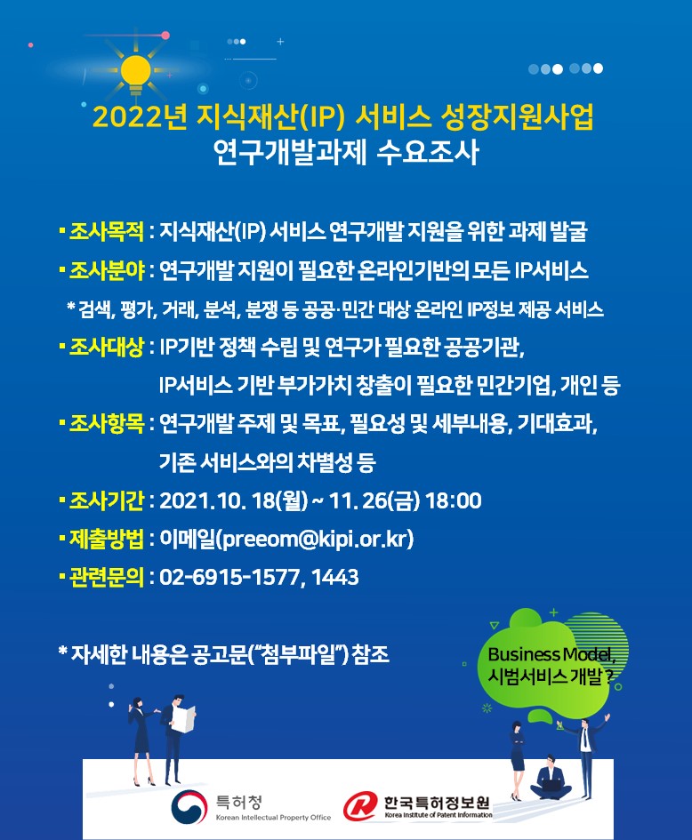 [한국특허정보원] '22년 지식재산(IP) 서비스 연구개발 과제 수요조사