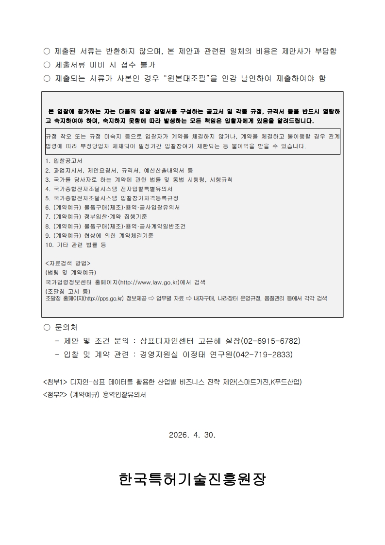 디자인-상표 데이터를 활용한 산업별 비즈니스 전략 제안(스마트가전,K푸드산업) 입찰공고문